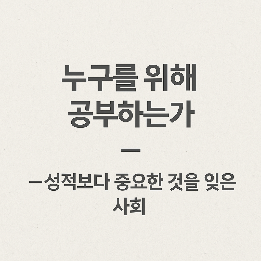 공부는 타인을 위해 하는 것이 아니라 ‘나’를 위한 것이어야 한다. 우리가 그 본질을 다시 붙잡을 때, 비로소 진짜 배움이 시작된다.